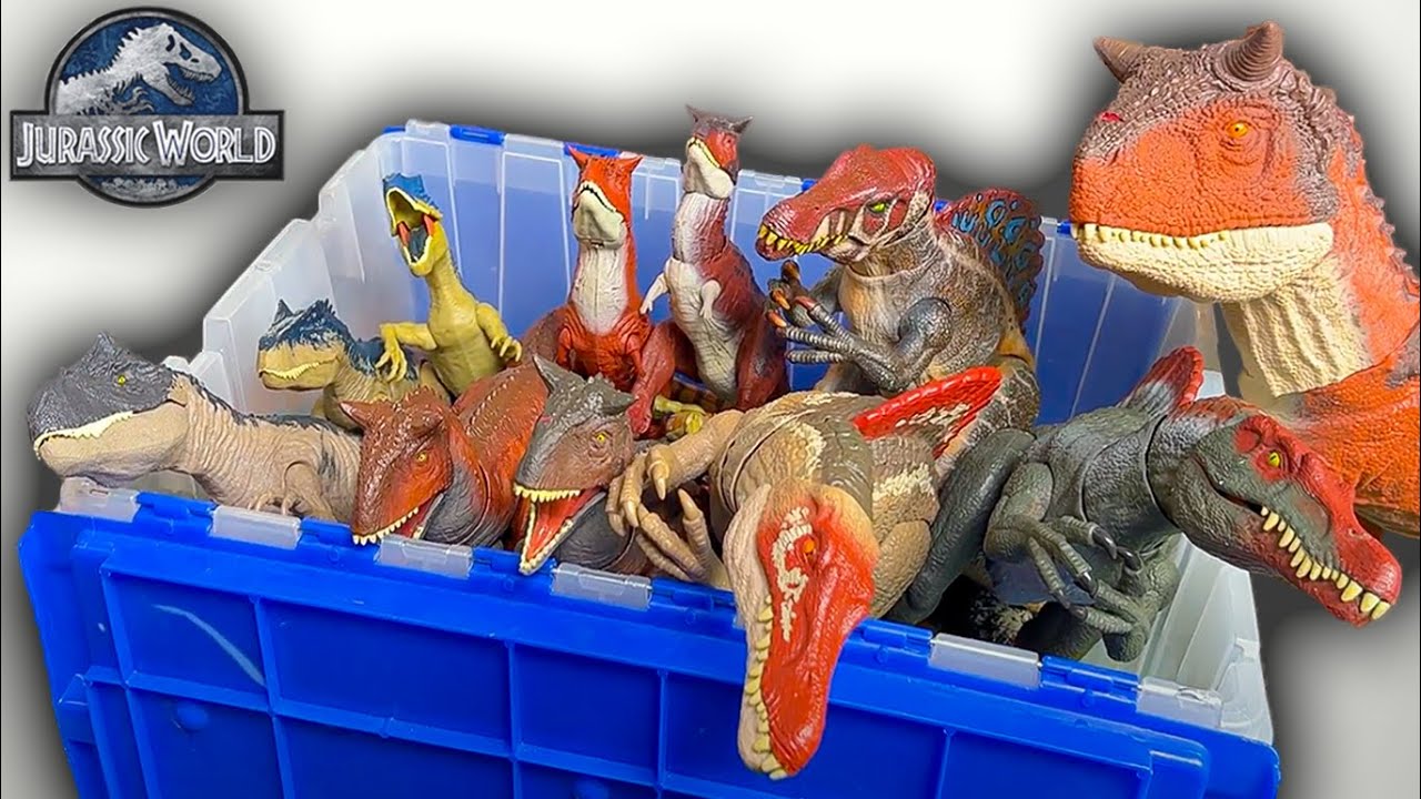 Colossal Box Of Jurassic Park Dinosaurs Collection T Rex Spinosaurus Carnotaurus Velociraptor Youtube