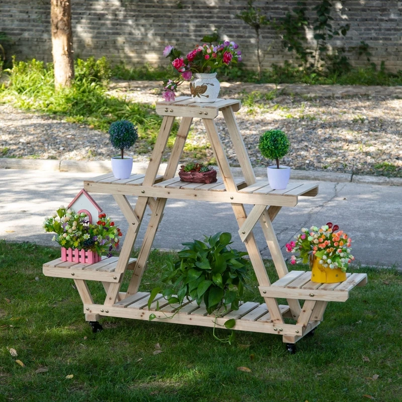 56 X 14 X 41 4 Tier Wooden Plant Stand Sturdy And Durable With Removable Wheels Large Display Capacity Wood Build Aliexpress